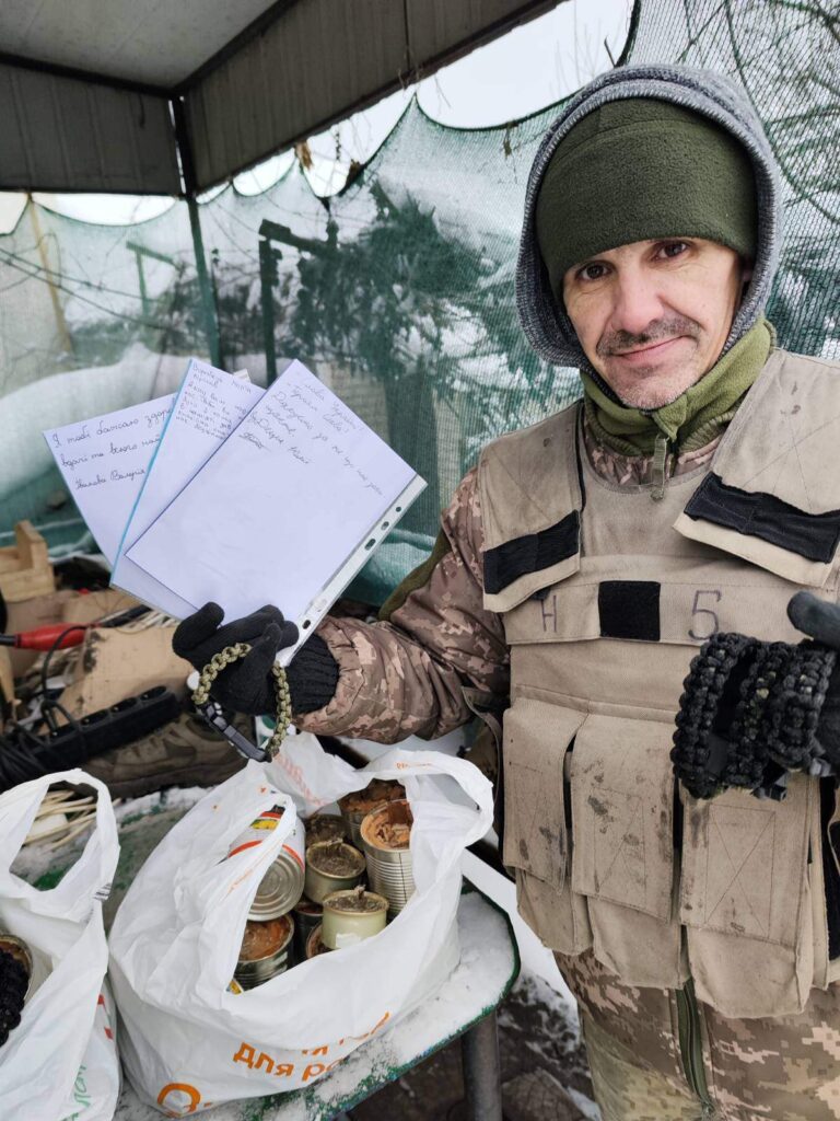 Частину оберегів з акції “Оберіг для мого захисника” ми передали воїнам 14 -тої окремої механізованої бригади ім. Князя Романа Великого, 2 механізований батальйон, 5 рота. Браслети-обереги, так звані “браслети для виживання” сплетені вручну дітьми, листівки та окопні свічки.