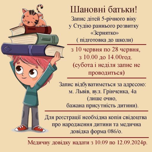 Опубліковано 17/08/2020 До уваги батьків!!!! Запис у студію раннього розвитку “Зернятко” 19 і 20 серпня 2020 року онлайн буде закрито! Де Ви зможете записати свою дитину у […]