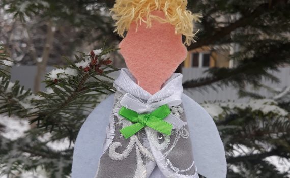 Лот № 7 “Мій Ангелик” Неповторний декор для дому та новорічної ялинки. Виконали : Соломійчук Г.М. та арт студія ” Палітра ідей” Початкова ціна – 50 гривень. Наступний Крок – 10 гривень.